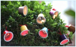 Pinta las copas de colores distintos y a cada uno hazle un agujero en la mitad del tamaño preciso para que puedas poner las luces. Acomoda las luces y listo acabas de realizar un adorno innovador, ecológico y práctico.